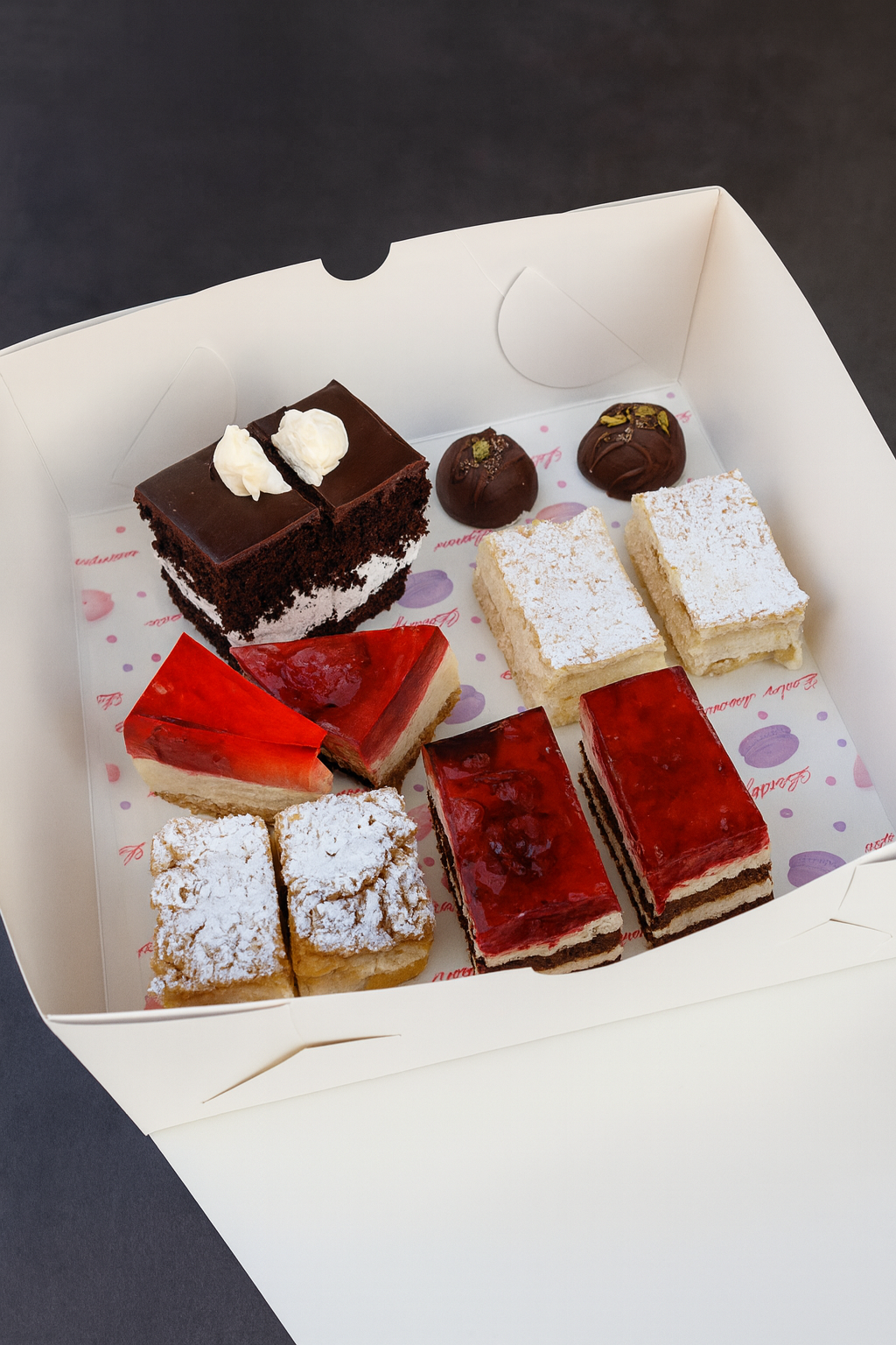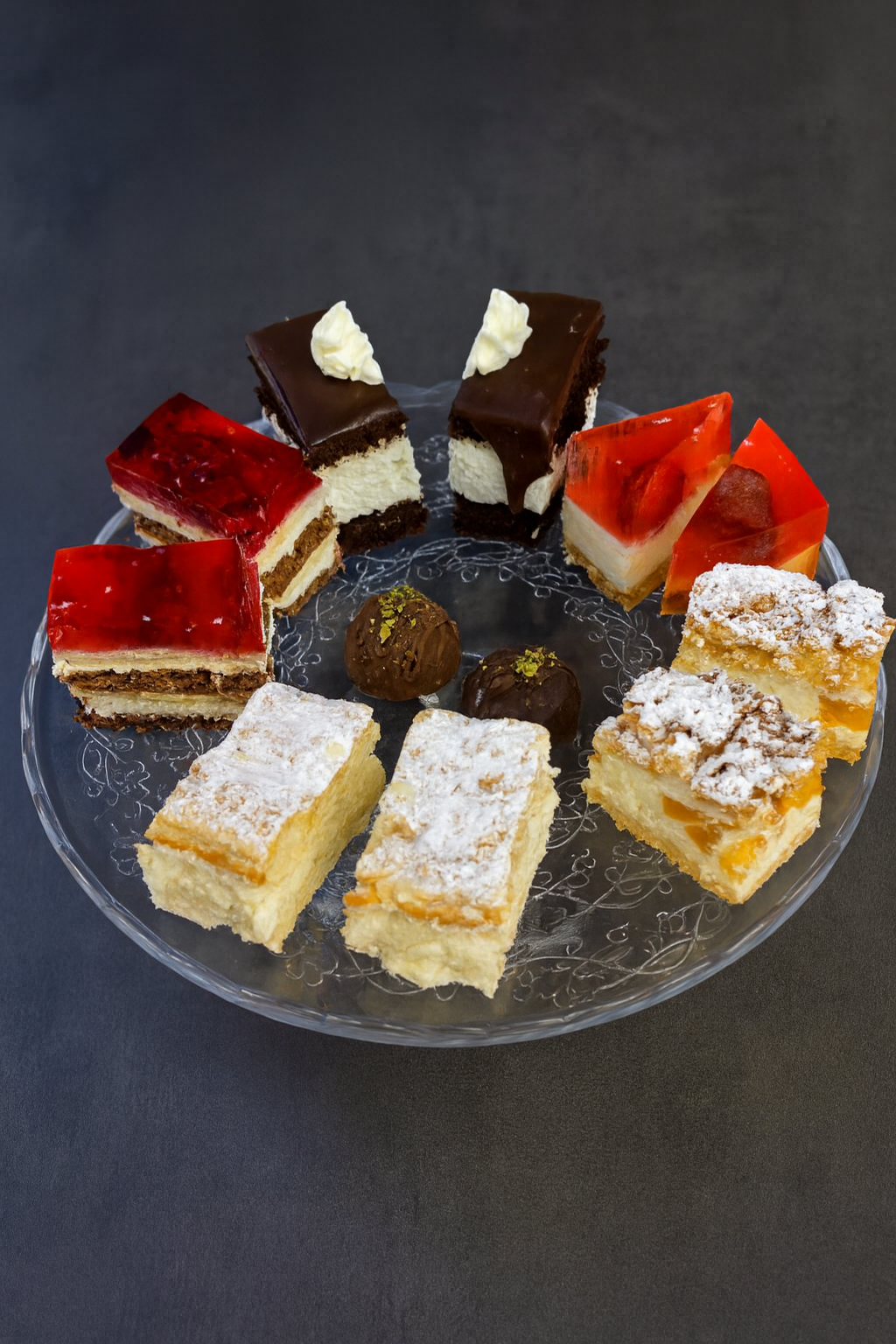 - Wij zorgen voor een gevarieerde selectie van heerlijke taart- en cakestukjes.
